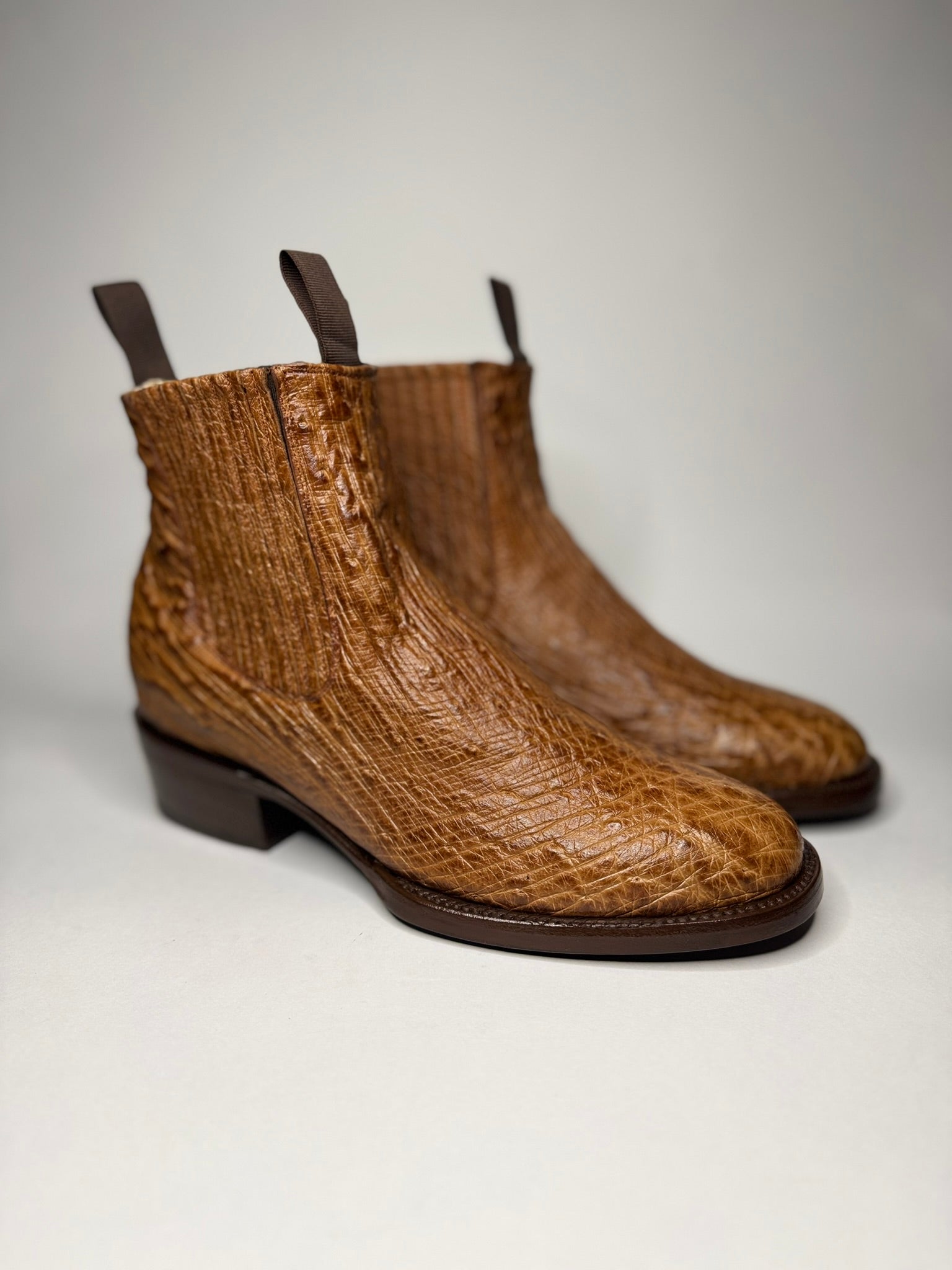Bota Chelsea Avestruz Cognac